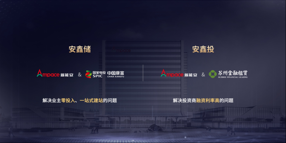 新能安聯(lián)合中國康富,推出“安鑫儲“金融方案,通過”0“首付和一站式建站服務(wù),同時制定了靈活的買斷和退出機制,最大程度上解決了用戶初始投資難的問題。同時,聯(lián)合蘇州金融租賃,推出“安鑫投“金融方案,融資利率最低可達4%,額度至高可達儲能電站合同總價的95%,有效降低了業(yè)主和投資方的融資成本。