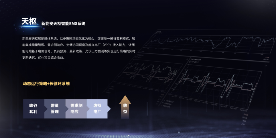 同時,推出“天樞“智能EMS系統(tǒng),通過場站負荷預(yù)測,智能調(diào)整儲能電站充放電策略,不僅可以優(yōu)化峰谷套利,更能進行智能降需以及優(yōu)化光伏消納。