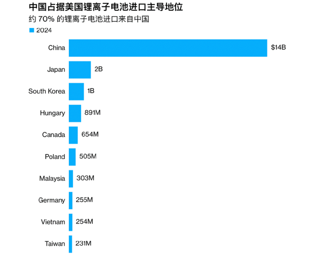 2024年 12 月,中國對美國的鋰離子電池出口額達(dá)到 19 億美元,創(chuàng)下歷史新高。