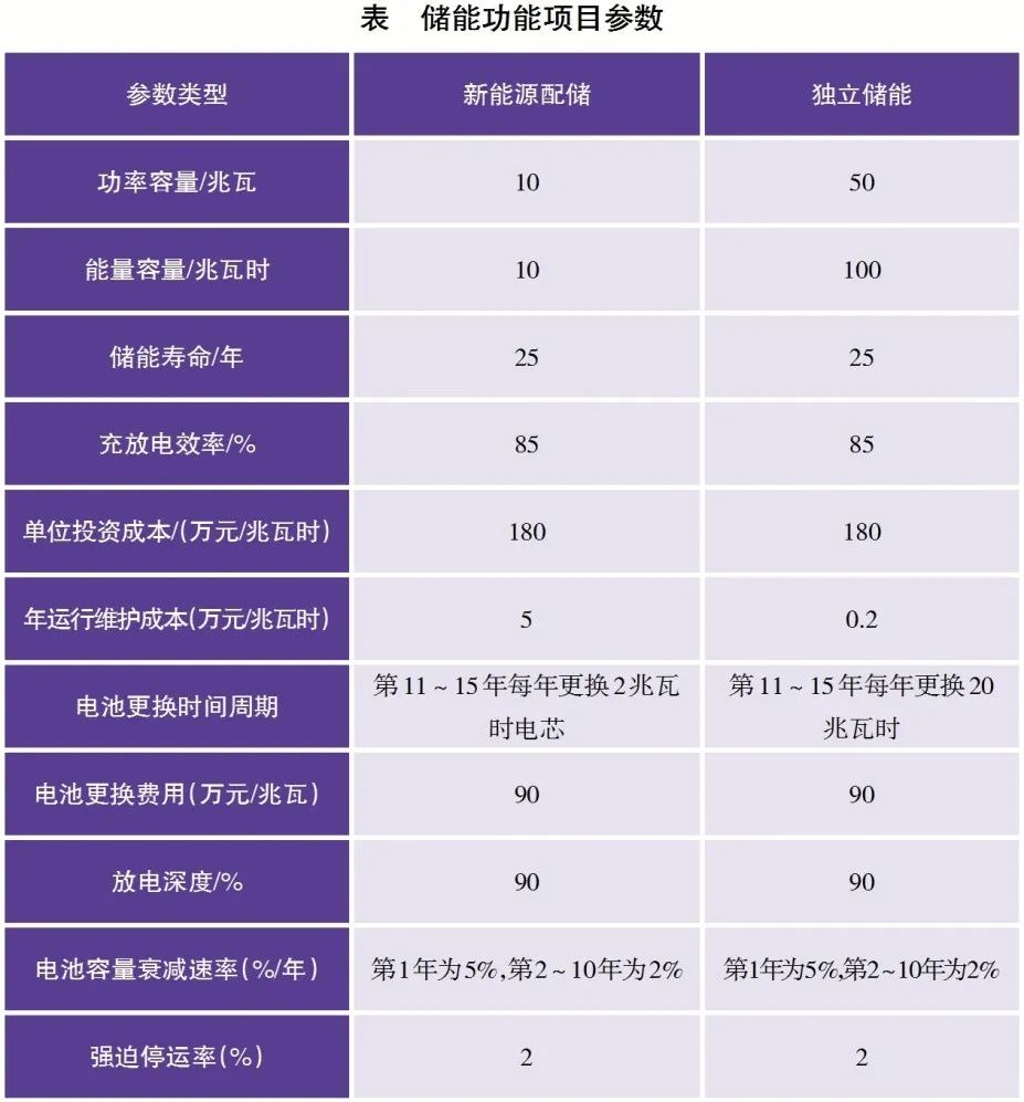 對(duì)于典型配置的儲(chǔ)能單獨(dú)參與市場(chǎng)的商業(yè)模式進(jìn)行測(cè)算,不考慮政府補(bǔ)貼。分別考慮新能源配儲(chǔ)和獨(dú)立儲(chǔ)能兩種類型。采用以上介紹的方法對(duì)表中所示兩種類型的某電池儲(chǔ)能系統(tǒng)展開(kāi)測(cè)算。