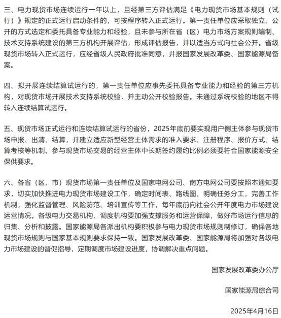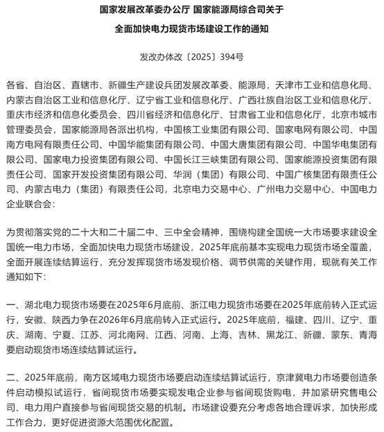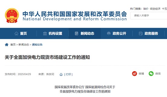 中國(guó)儲(chǔ)能網(wǎng)訊:4月29日,國(guó)家發(fā)改委、國(guó)家能源局聯(lián)合發(fā)布《關(guān)于全面加快電力現(xiàn)貨市場(chǎng)建設(shè)工作的通知》,明確2025年底前基本實(shí)現(xiàn)電力現(xiàn)貨市場(chǎng)全覆蓋,標(biāo)志著我國(guó)電力市場(chǎng)化改革邁入全新階段。這份文件不僅勾勒出全國(guó)統(tǒng)一電力市場(chǎng)的建設(shè)路線圖,更將儲(chǔ)能行業(yè)推向了價(jià)值重構(gòu)的十字路口。