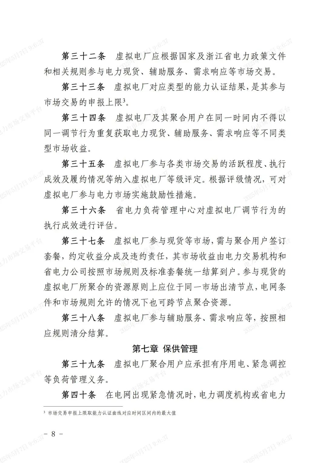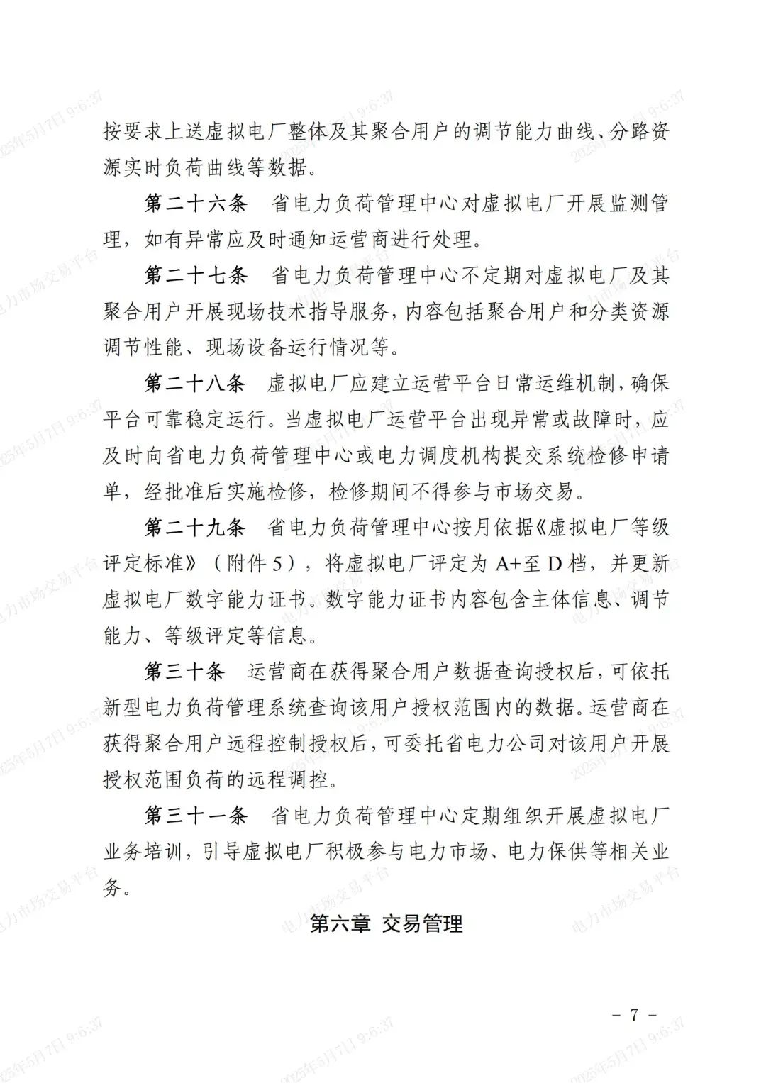 中國儲能網(wǎng)訊:據(jù)國網(wǎng)浙江省電力有限公司6日消息,《浙江省虛擬電廠運(yùn)營管理細(xì)則(試行)》(下稱《細(xì)則》)近日印發(fā),其首次系統(tǒng)明確虛擬電廠從“注冊接入—能力認(rèn)證—運(yùn)行管理—交易管理—保供管理—退出管理”的全流程閉環(huán)管理要求,并依托新型電力負(fù)荷管理系統(tǒng)實現(xiàn)資源“可觀、可測、可調(diào)、可控”,推動虛擬電廠健康運(yùn)營,助力新型電力系統(tǒng)高質(zhì)量發(fā)展。