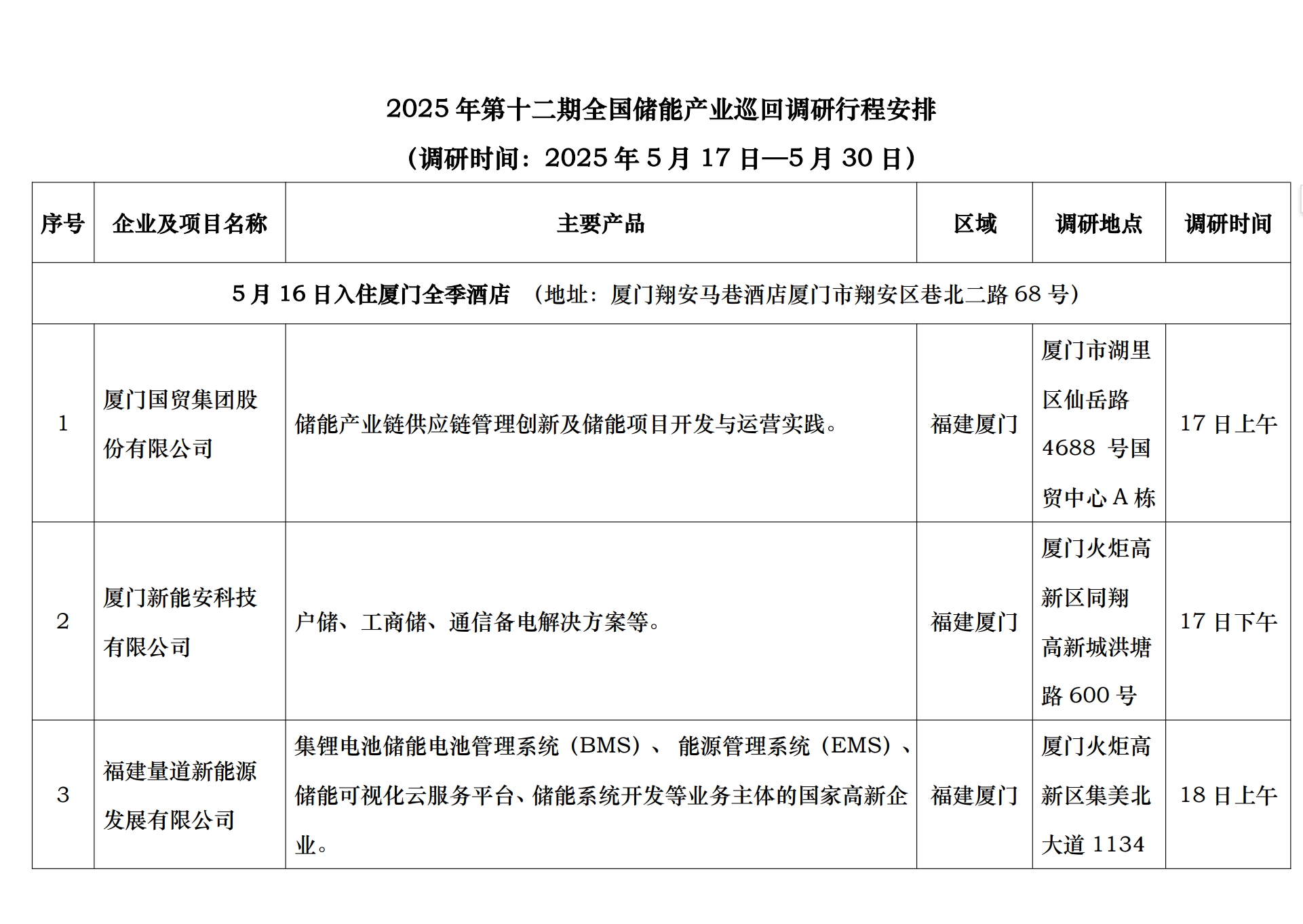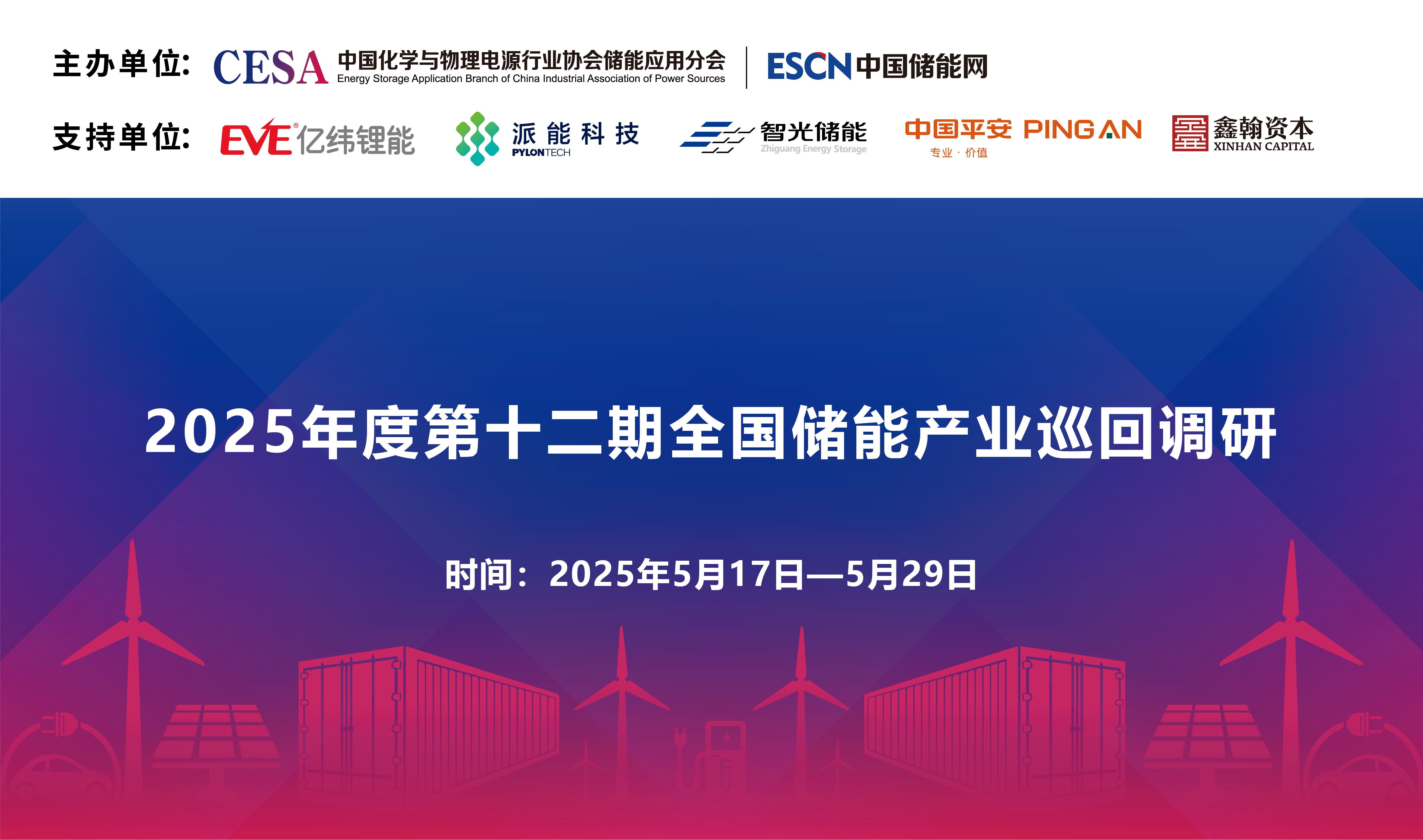 中國儲能網(wǎng)訊:為進(jìn)一步做好“十五五”新型儲能產(chǎn)業(yè)發(fā)展規(guī)劃及了解當(dāng)前儲能企業(yè)生產(chǎn)經(jīng)營現(xiàn)狀、生態(tài)鏈協(xié)同發(fā)展、行業(yè)內(nèi)卷、海外關(guān)稅及貿(mào)易壁壘、市場化商業(yè)模式、標(biāo)準(zhǔn)建設(shè)、政策機(jī)制等方面訴求,并向行業(yè)主管部門提出合理化建議。中國化學(xué)與物理電源行業(yè)協(xié)會儲能應(yīng)用分會與中國儲能網(wǎng)決定將于5月17—29日組織開展2025年度第十二期全國儲能產(chǎn)業(yè)巡回調(diào)研工作,現(xiàn)將具體調(diào)研行程安排通知如下(最終行程以活動當(dāng)天公布為準(zhǔn)):