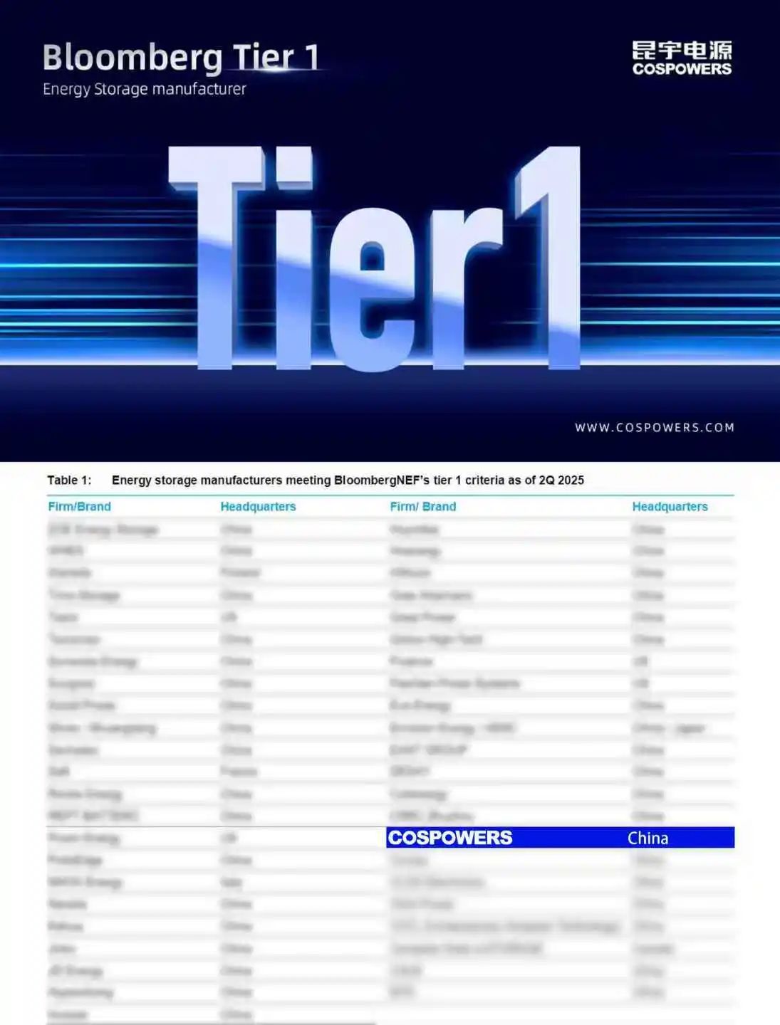 中國儲能網(wǎng)訊:近日,國際權威研究機構BloombergNEF(彭博新能源財經(jīng),簡稱BNEF)正式發(fā)布《2025年第二季度全球儲能系統(tǒng)供應商Tier 1榜單》(BNEF Energy Storage Tier 1 List Q2 2025)。昆宇電源憑借卓越的技術創(chuàng)新實力、全球化項目交付能力及穩(wěn)健的供應鏈體系,成功躋身全球頂級儲能廠商行列。