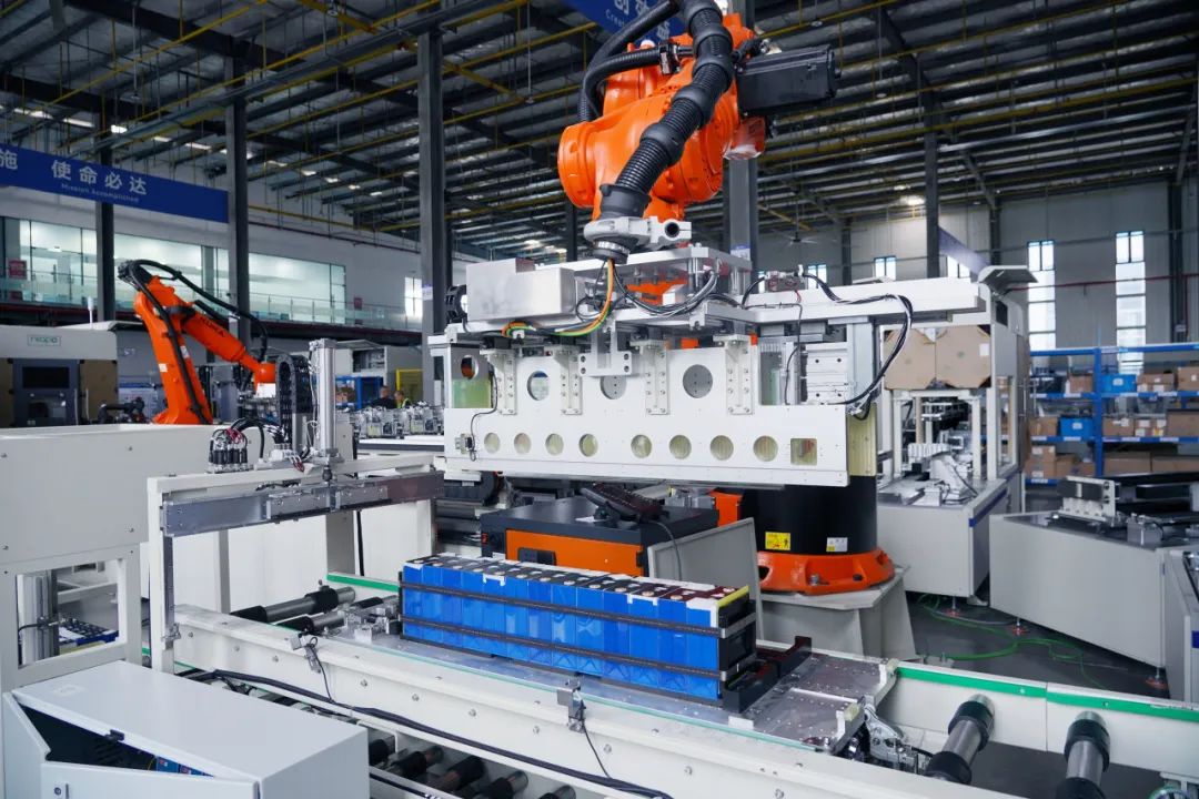 該產(chǎn)線可兼容50~314Ah容量方形電池系統(tǒng)的組裝,年產(chǎn)能達(dá)5GWh以上,覆蓋從電芯處理、到PACK裝配、再到集裝箱裝配和檢測等全流程工段,為客戶提供一站式大儲能系統(tǒng)解決方案,打造高效智能產(chǎn)線標(biāo)桿。