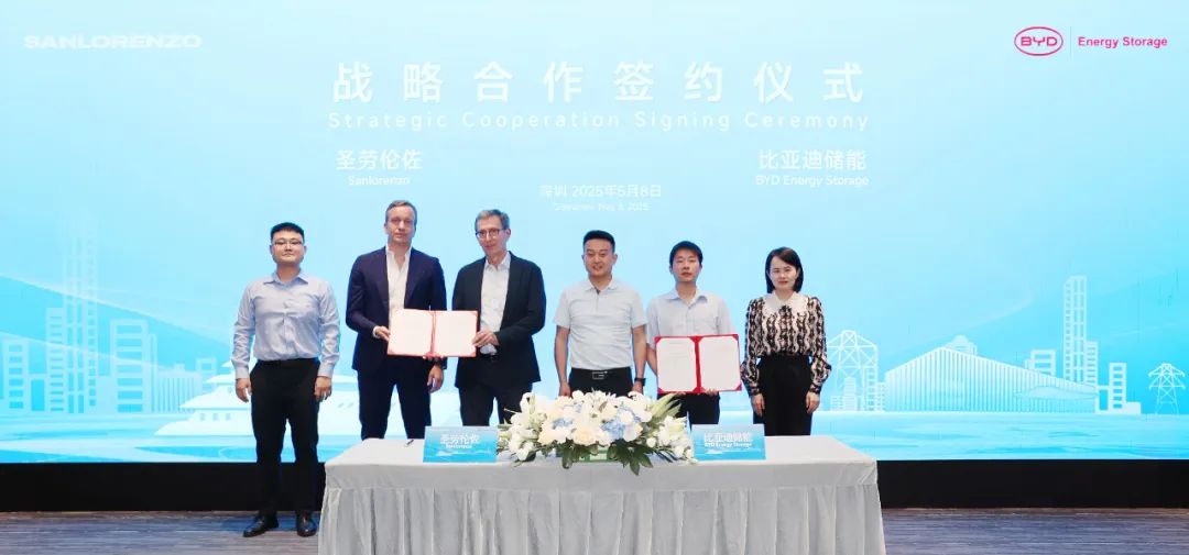 中國(guó)儲(chǔ)能網(wǎng)訊:2025年5月8日,比亞迪儲(chǔ)能與圣勞倫佐集團(tuán)(簡(jiǎn)稱“圣勞倫佐”)在深圳坪山比亞迪總部舉行戰(zhàn)略合作簽約儀式。圣勞倫佐首席創(chuàng)新官Paolo Bertetti、圣勞倫佐集團(tuán)采購(gòu)總監(jiān)Damiano Vincenzo Patelli,比亞迪儲(chǔ)能及新型電池事業(yè)部總經(jīng)理尹小強(qiáng)、新型應(yīng)用產(chǎn)品線總監(jiān)姜新軍等出席簽約儀式。