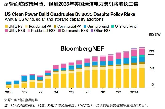 由于高關(guān)稅和可能削減稅收抵免,美國(guó)清潔能源項(xiàng)目正面臨多重風(fēng)險(xiǎn)。然而,自2023年以來(lái),電力需求重新增長(zhǎng)已證明光伏和風(fēng)電合同價(jià)格上漲是合理的,這蓋過(guò)了裝機(jī)方面的政策風(fēng)險(xiǎn)。盡管美國(guó)總統(tǒng)特朗普努力重振化石燃料,但實(shí)現(xiàn)美國(guó)在人工智能(AI)領(lǐng)域的雄心將需要大量新增清潔電力。