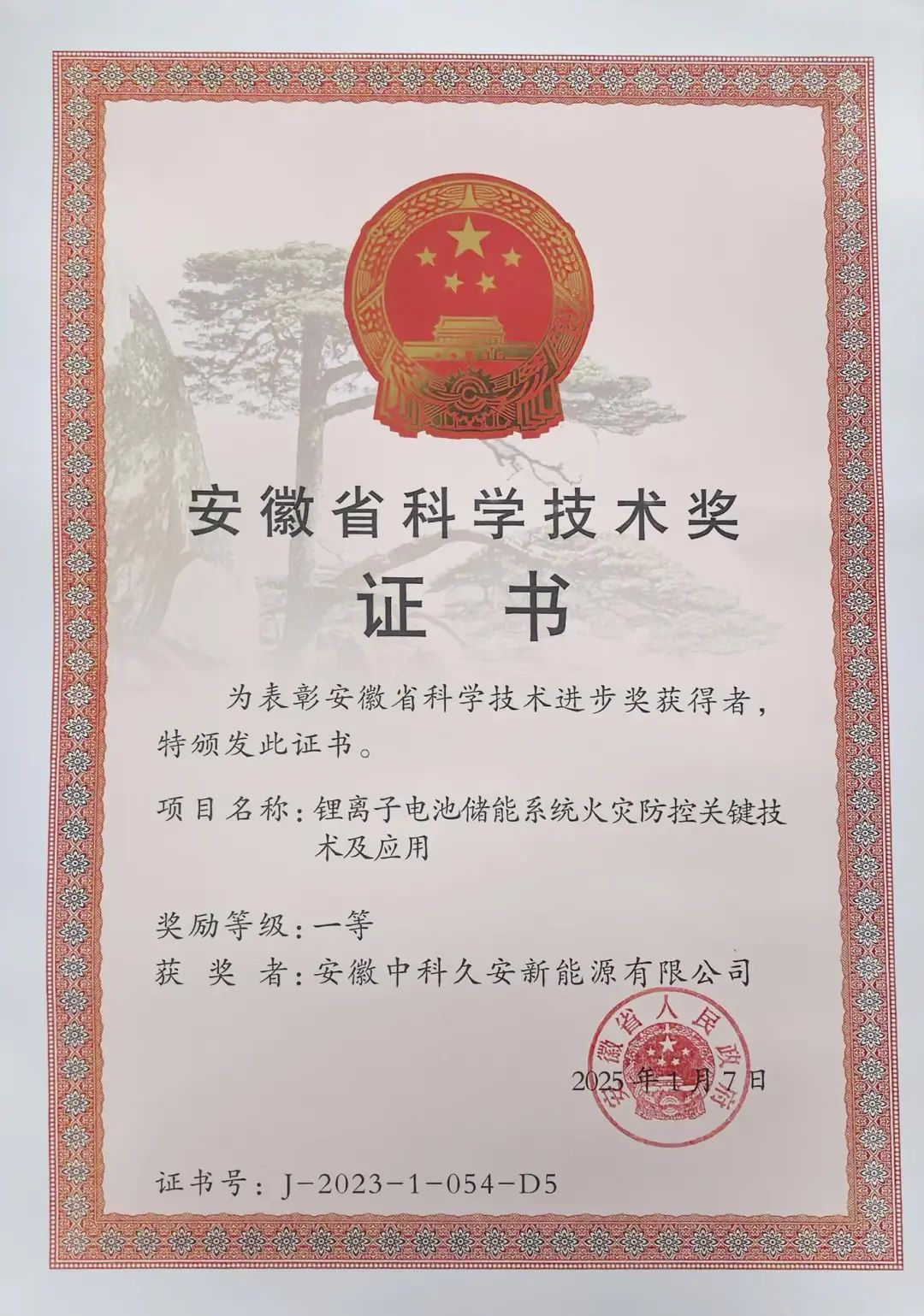 領(lǐng)跑鋰電安全新賽道,中科久安斬獲安徽省科技進(jìn)步一等獎(jiǎng)