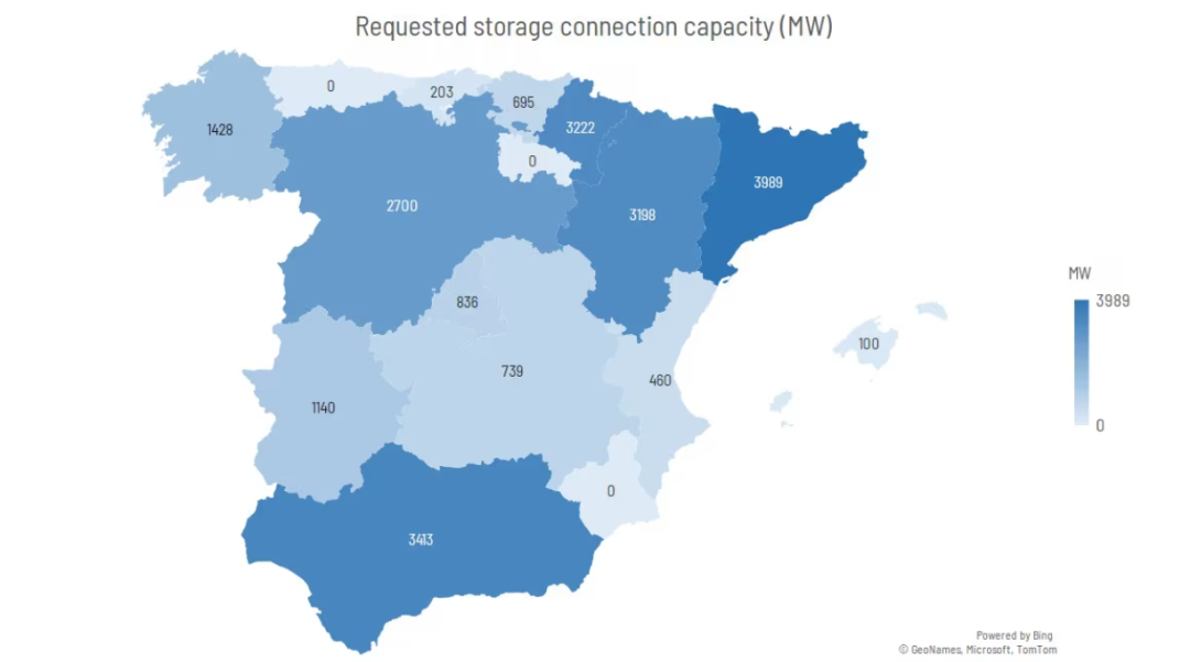 得益于西班牙已安裝的大型水電和熱力儲(chǔ)能系統(tǒng)以及其電網(wǎng)的強(qiáng)韌,西班牙對(duì)電池儲(chǔ)能系統(tǒng)(BESS)的需求相對(duì)較低。截至目前,BESS缺乏明確的監(jiān)管框架也阻礙了其在西班牙的發(fā)展。盡管如此,已申請的并網(wǎng)容量總和已接近《國家儲(chǔ)能戰(zhàn)略》中設(shè)定的2030年目標(biāo)。