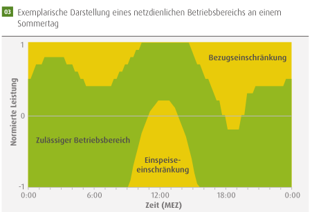 相較于電網(wǎng)中性標(biāo)準(zhǔn),電網(wǎng)友好型儲(chǔ)能在運(yùn)營中的限制條件顯著更高(參見圖3示例)。為設(shè)置必要激勵(lì)并保障運(yùn)營商經(jīng)濟(jì)可行性,運(yùn)營商將獲得服務(wù)報(bào)酬。立法機(jī)構(gòu)通過《能源經(jīng)濟(jì)法》第11a條開放了儲(chǔ)能設(shè)施招標(biāo)機(jī)制,允許將相關(guān)成本納入監(jiān)管認(rèn)可范圍。其前提是:儲(chǔ)能設(shè)施對(duì)于電網(wǎng)運(yùn)營商高效履行"運(yùn)營安全、可靠且高效能供電網(wǎng)絡(luò)"的法定義務(wù)具有必要性。