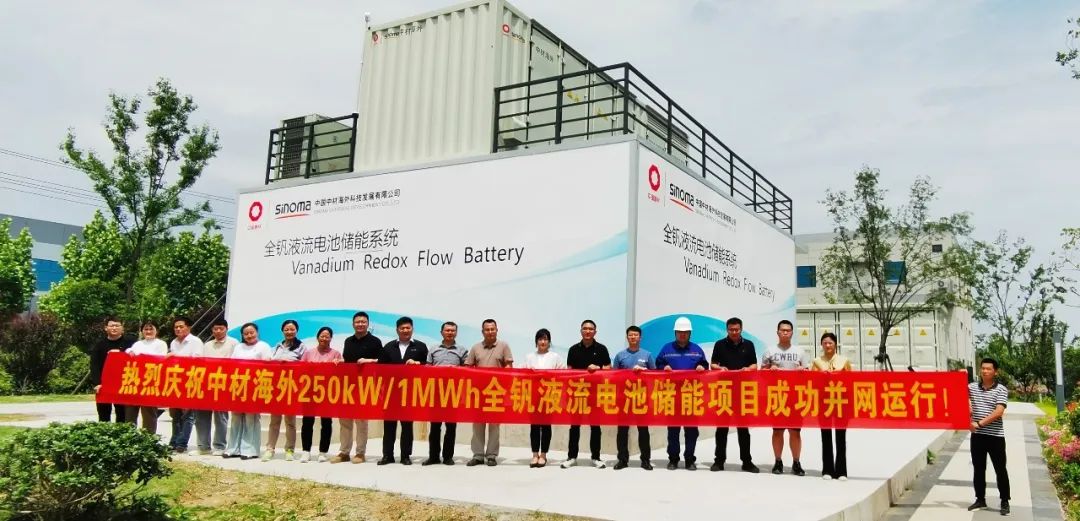 中國(guó)儲(chǔ)能網(wǎng)訊:5月16日,中材海外投資建設(shè)的SinoVess-250CS全釩液流電池儲(chǔ)能系統(tǒng)在中國(guó)建材裝備集團(tuán)高端裝備智造園實(shí)現(xiàn)并網(wǎng)運(yùn)行。作為新型儲(chǔ)能實(shí)驗(yàn)室的首個(gè)示范工程,該項(xiàng)目采用具有高安全性、長(zhǎng)循環(huán)壽命等優(yōu)勢(shì)的全釩液流電池技術(shù),系統(tǒng)額定功率達(dá)250kW,儲(chǔ)能容量1MWh,年放電量約為50萬(wàn)kW·h,將為園區(qū)提供可靠的電力調(diào)峰和應(yīng)急備用電源服務(wù)。