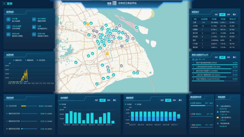 虛擬電廠的核心在于資源的智能聚合與精準(zhǔn)調(diào)控。申能儲(chǔ)能自2021年起,依托物聯(lián)網(wǎng)技術(shù),搭建了覆蓋資源接入、實(shí)時(shí)監(jiān)控、運(yùn)維管理全流程的“申能分布式能源管理平臺(tái)”(見(jiàn)圖2)。該平臺(tái)具備三大創(chuàng)新優(yōu)勢(shì):