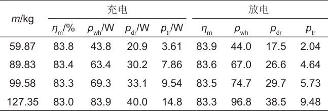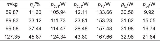 此外,由實(shí)驗(yàn)數(shù)據(jù)計(jì)算的m=127.35 kg時(shí)的系統(tǒng)各損耗見表5。