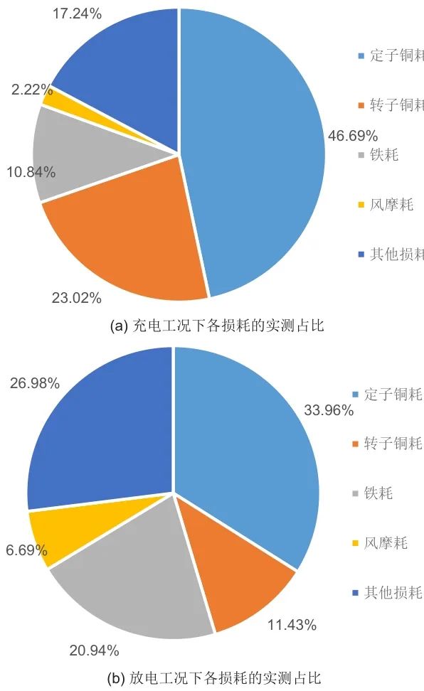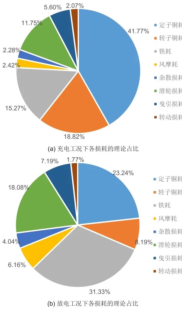 (2)系統(tǒng)充電時(shí),電氣損耗占比與放電時(shí)相比明顯升高,機(jī)械損耗占比明顯降低。