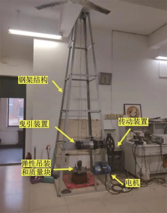 前述計(jì)算方法以及算例結(jié)果需要通過實(shí)驗(yàn)驗(yàn)證。根據(jù)圖1所示結(jié)構(gòu)搭建的垂直式重力儲(chǔ)能系統(tǒng)樣機(jī)如圖3所示。