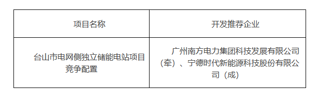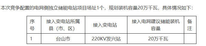 臺山市電網(wǎng)側(cè)獨(dú)立儲能電站項(xiàng)目競爭配置結(jié)果的公示