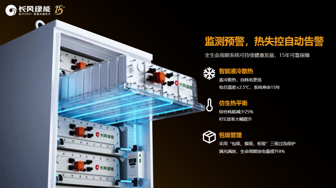 精準(zhǔn)溫控技術(shù):長風(fēng)綠能獨(dú)家研發(fā)的智能化溫控管理系統(tǒng),將電芯溫差控制在±2.5℃以內(nèi),較傳統(tǒng)風(fēng)冷方案溫差降低70%,有效延長電池使用壽命。