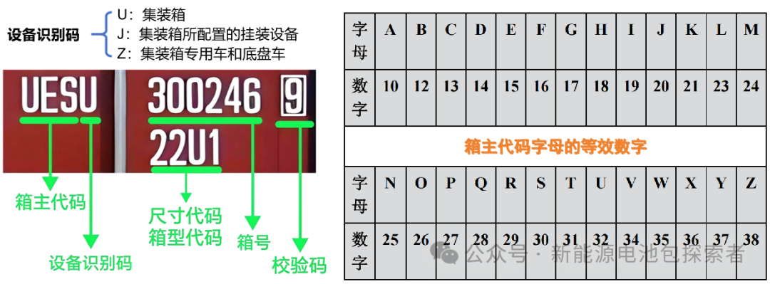 識(shí)別標(biāo)記主要由箱主代碼(UES)、設(shè)備識(shí)別碼(U/J/Z)、箱順序號(hào)(300246)、校驗(yàn)碼(9)等組成。