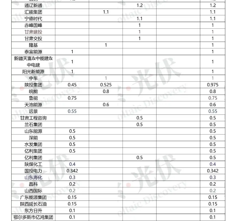 從業(yè)主歸屬看,國(guó)家能源集團(tuán)以超50GW的總規(guī)模位居首位,三峽、華能、國(guó)家電投、華電等央企的基地項(xiàng)目規(guī)模均達(dá)25GW以上;蒙能、大唐、中廣核、中核等央國(guó)企規(guī)模達(dá)10GW;京能、晉能、甘肅電投等地方國(guó)企依托省內(nèi)資源優(yōu)勢(shì),獲取5GW以上基地項(xiàng)目;華潤(rùn)、中石油、中煤等企業(yè)也布局了2GW以上項(xiàng)目。