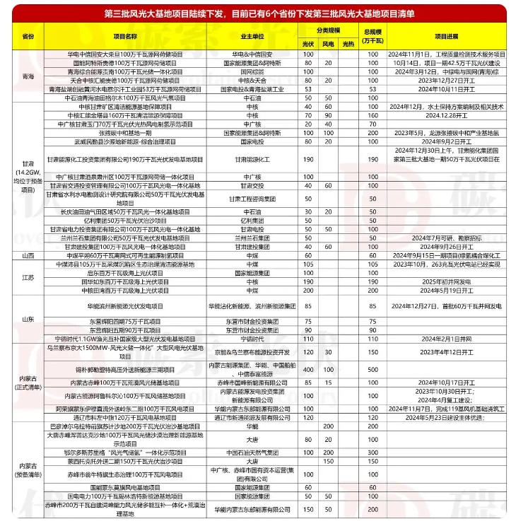 第三批:約52.68GW已明確業(yè)主規(guī)模,部分項(xiàng)目啟動(dòng)建設(shè)。