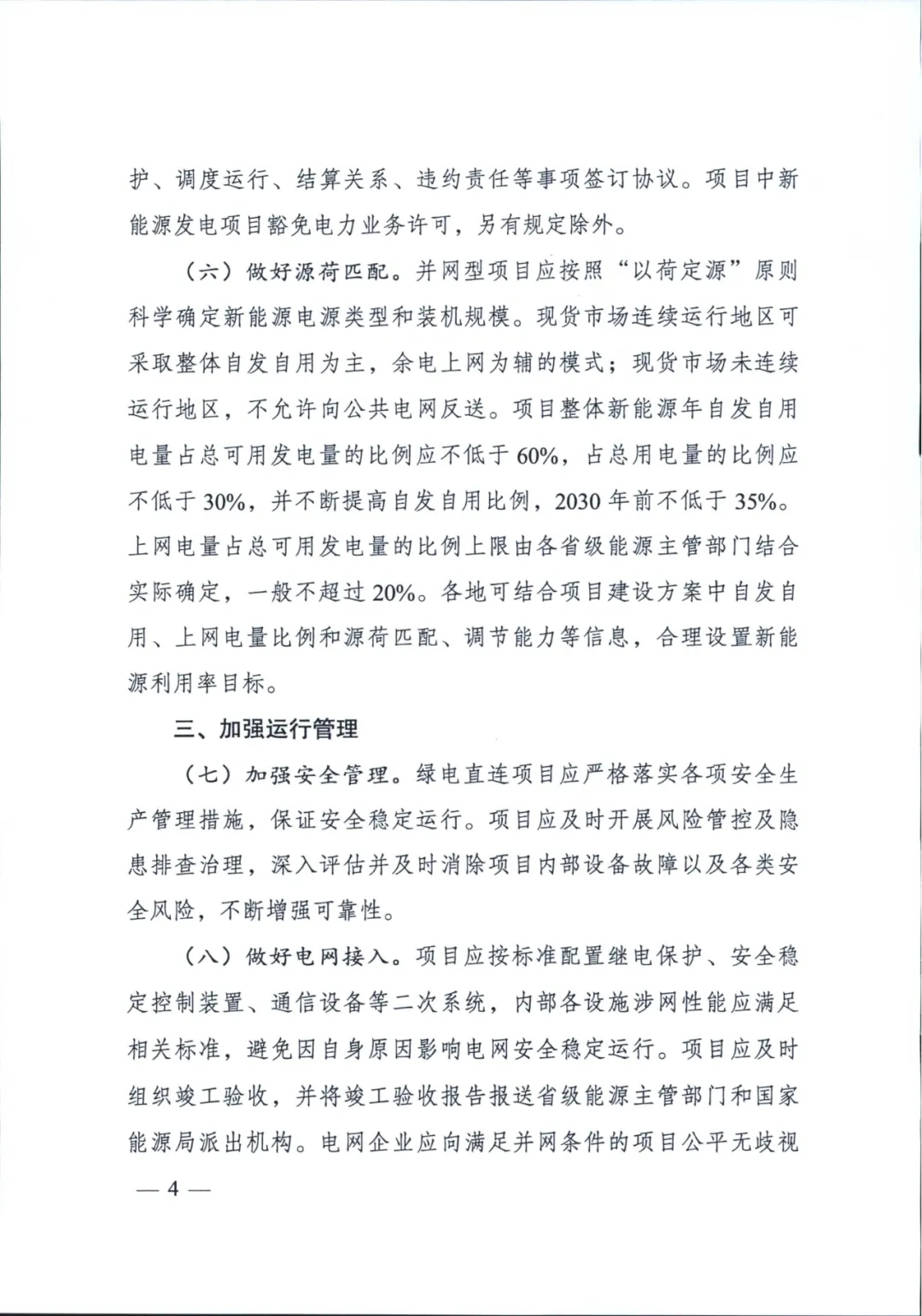 具體比例:項(xiàng)目應(yīng)按照“以荷定源”原則,項(xiàng)目整體新能源年自發(fā)自用電量占總可用發(fā)電量的比例應(yīng)不低于60%,占總用電量的比例應(yīng)不低于30%,并不斷提高自發(fā)自用比例,2030年前不低于35%。
