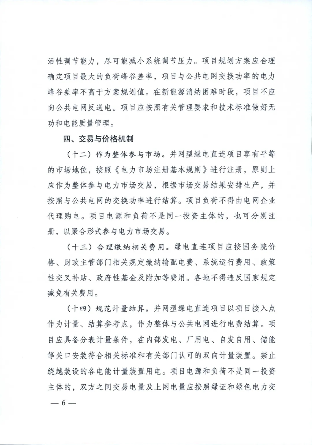 費(fèi)用方面:綠電直連項(xiàng)目應(yīng)按國(guó)務(wù)院價(jià)格、財(cái)政主管部門相關(guān)規(guī)定繳納輸配電費(fèi)、系統(tǒng)運(yùn)行費(fèi)用、政策性交叉補(bǔ)貼、政府性基金及附加等費(fèi)用。各地不得違反國(guó)家規(guī)定減免有關(guān)費(fèi)用。