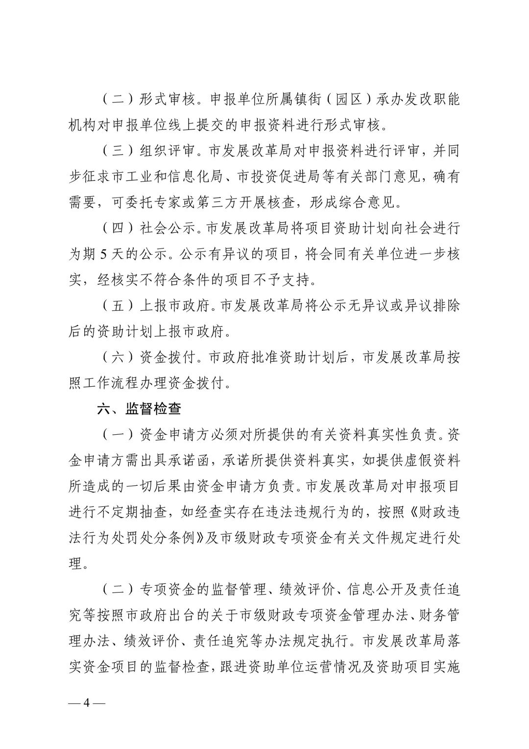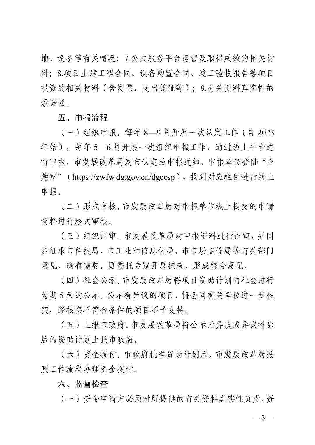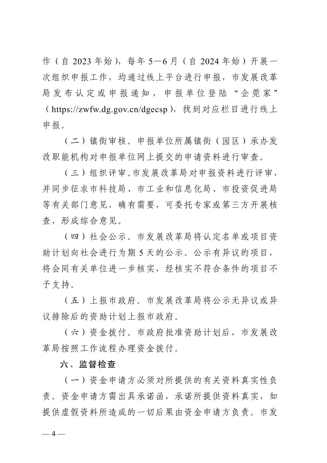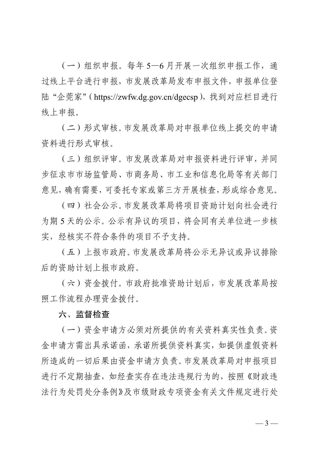 (六)公示。市發(fā)展改革局形成擬資助計劃并在市發(fā)展改革局官網(wǎng)和“企莞家”企業(yè)綜合服務平臺向社會進行為期5個自然日的公示。公示如有異議的項目,將會同有關單位進一步核實,經(jīng)核實不符合條件的項目不予支持。