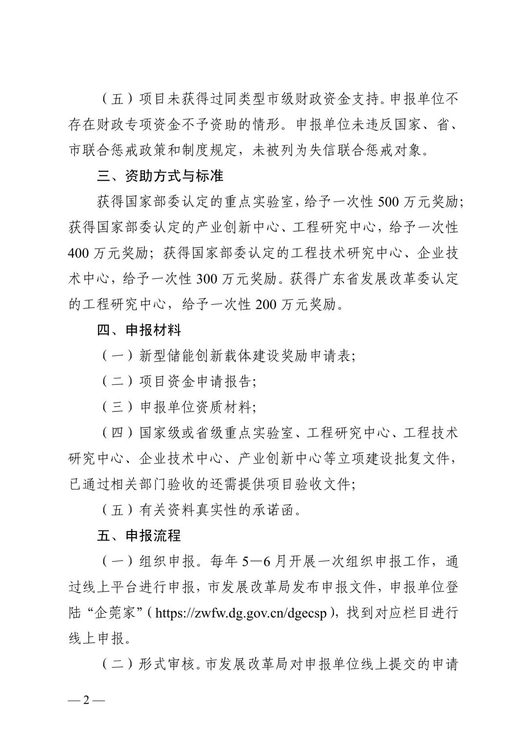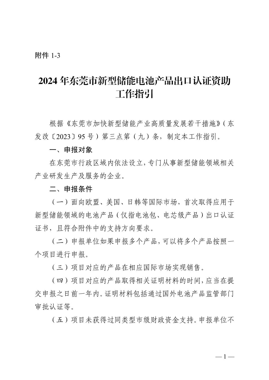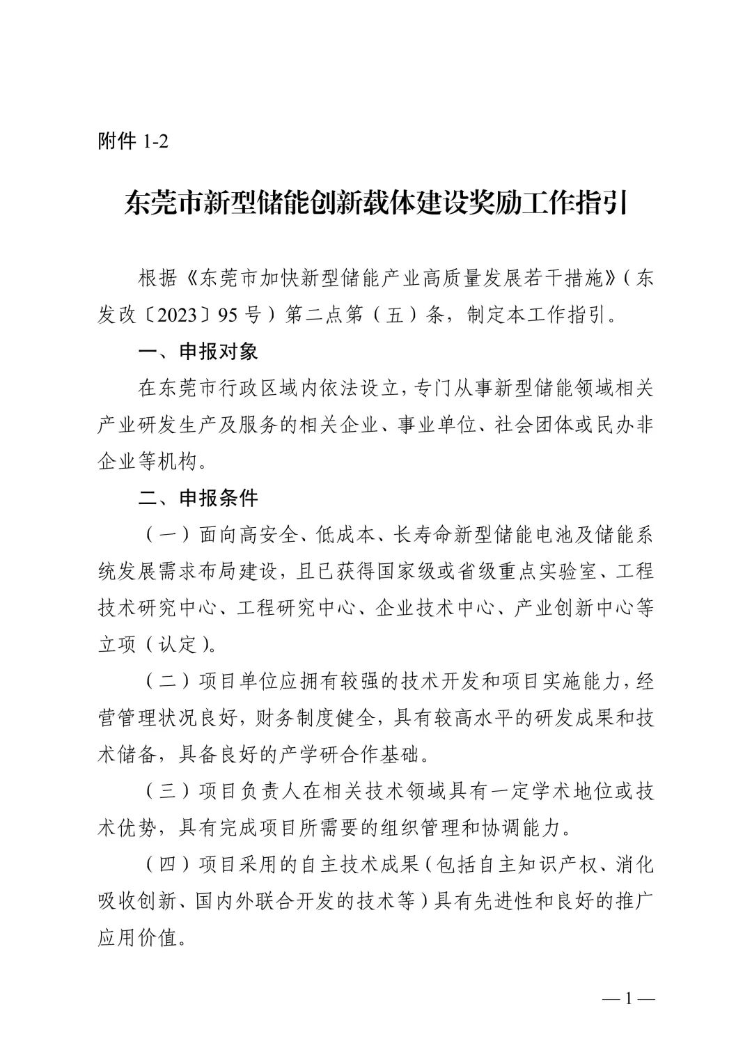 根據(jù)《東莞市加快新型儲能產(chǎn)業(yè)高質量發(fā)展若干措施》(東發(fā)改〔2023〕95號)《東莞市新型儲能產(chǎn)業(yè)高質量發(fā)展專項資金管理辦法》(東發(fā)改〔2023〕187號)及相關工作指引,現(xiàn)就組織開展我市2024年度東莞市新型儲能高質量發(fā)展專項資金申報工作的有關事項通知如下: