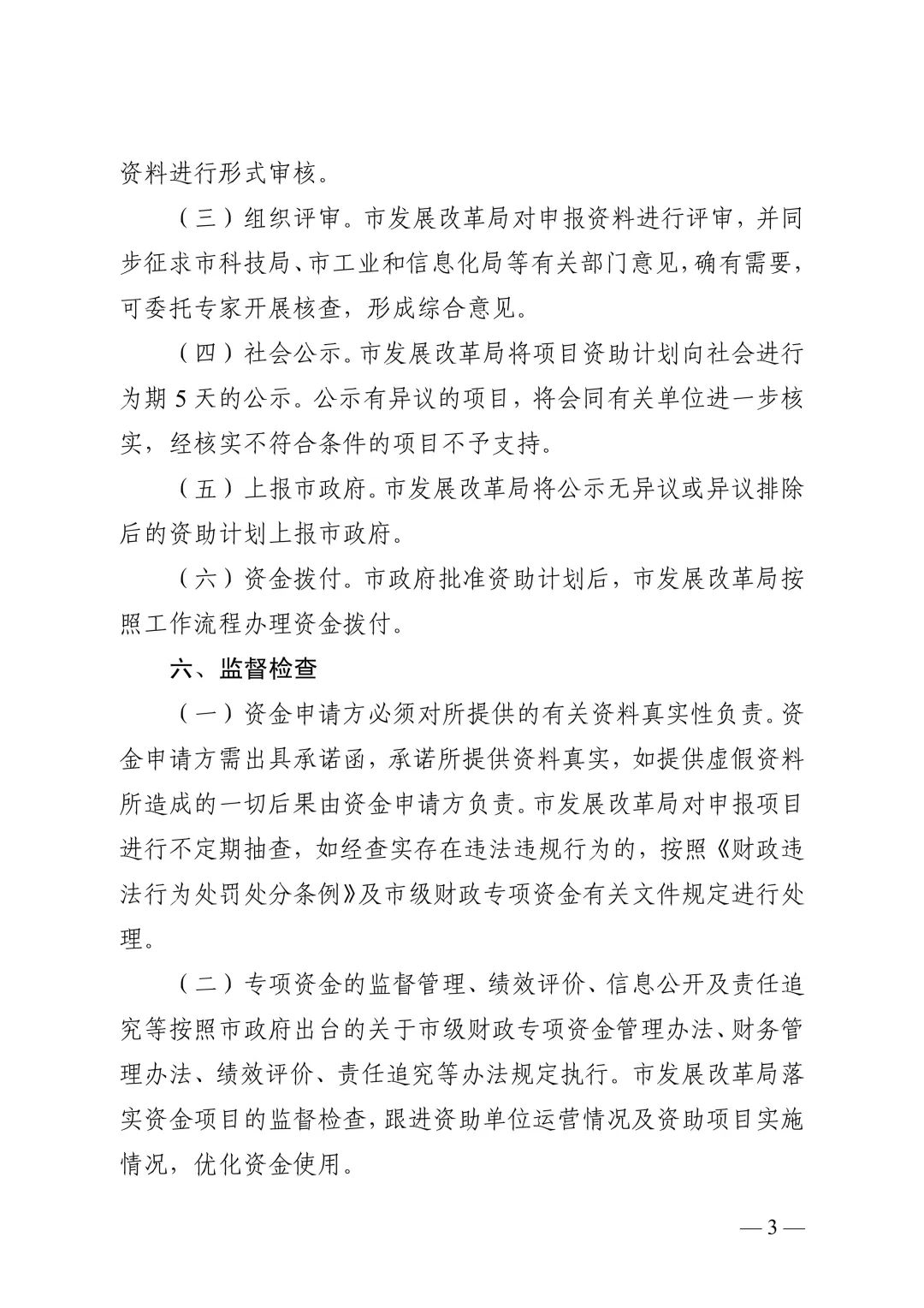 (七)撥付。市發(fā)展改革局將公示無異議或異議排除后的擬資助計劃上報市政府,市政府批準資助計劃后,市發(fā)展改革局按照工作流程辦理資金撥付。