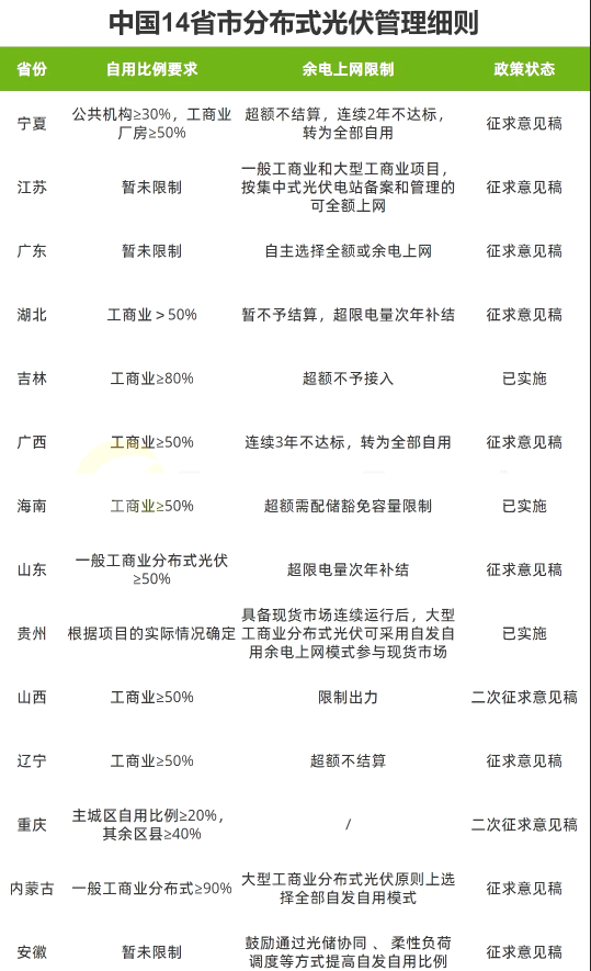 ③通過(guò)參考上面14個(gè)省份,對(duì)于沒(méi)有出臺(tái)對(duì)應(yīng)細(xì)則的省市,所有工商業(yè)基本上安裝70%的消納比例去做。