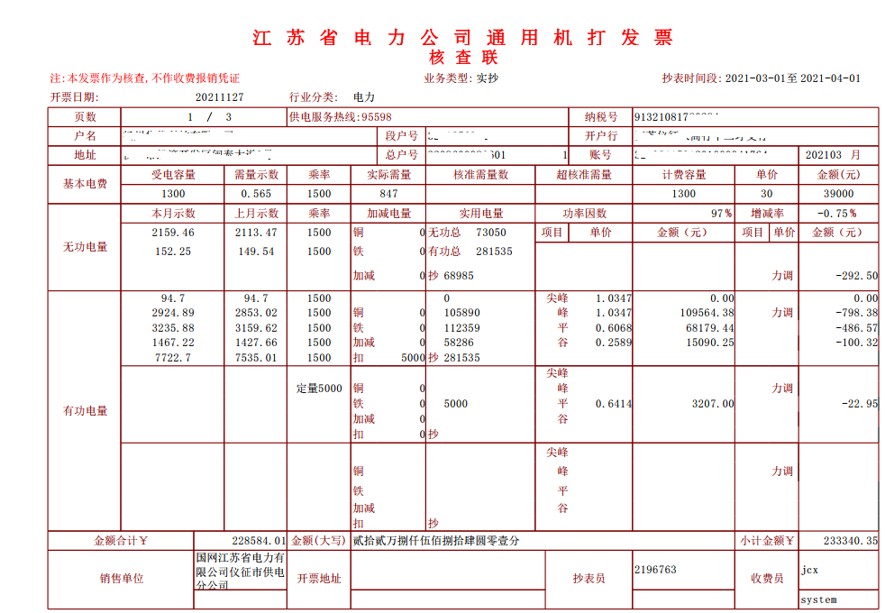 b)最近12個(gè)月以上的電費(fèi)清單、用電企業(yè)的用電負(fù)荷曲線、一次系統(tǒng)圖或變壓器的容量及數(shù)量、
