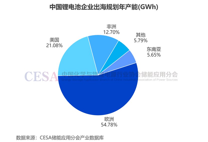 從已公布的鋰離子電池出海規(guī)劃產(chǎn)能區(qū)域分布來(lái)看,歐洲是最主要的投資區(qū)域,占比超50%,主要布局在匈牙利、西班牙、德國(guó)、芬蘭、英國(guó)、法國(guó)等國(guó)家,選址普遍貼近下游終端市場(chǎng),體現(xiàn)出“客戶導(dǎo)向+就近配套”的策略導(dǎo)向,旨在提升交付效率與響應(yīng)速度。