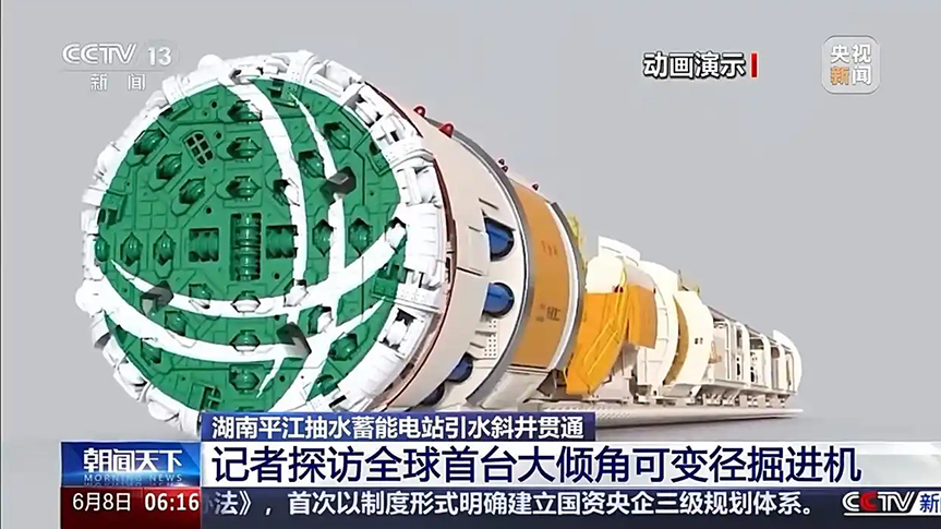在平江抽水蓄能電站的引水斜井建設(shè)中,全球首臺(tái)大傾角可變徑硬巖掘進(jìn)機(jī)——“天岳號(hào)”的采用,讓斜井的施工速度提高了三倍。