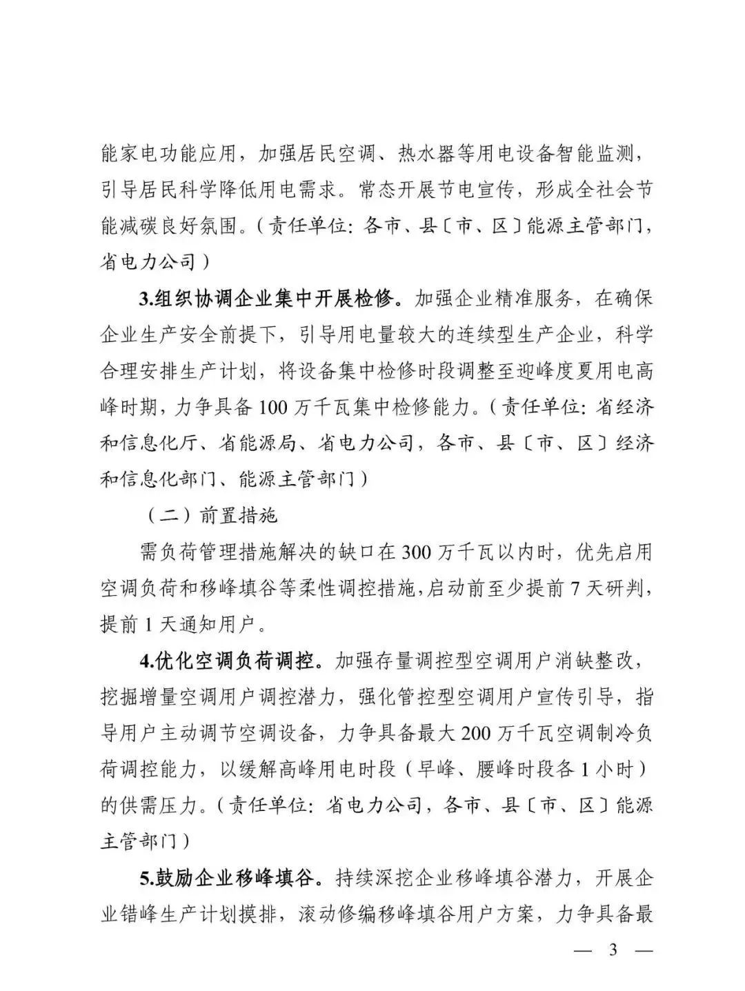 精準(zhǔn)實(shí)施需求響應(yīng)措施。按照“一次申報(bào)、周期滾動(dòng)、日前調(diào)用”原則,開展負(fù)荷資源年度申報(bào)、周計(jì)劃滾動(dòng),實(shí)現(xiàn)日前調(diào)用、日內(nèi)調(diào)用全域平衡。提前儲(chǔ)備、滾動(dòng)修訂迎峰度夏需求響應(yīng)專項(xiàng)方案,力爭具備最大600萬千瓦約定型響應(yīng)能力,鼓勵(lì)用戶側(cè)儲(chǔ)能參與需求響應(yīng)。