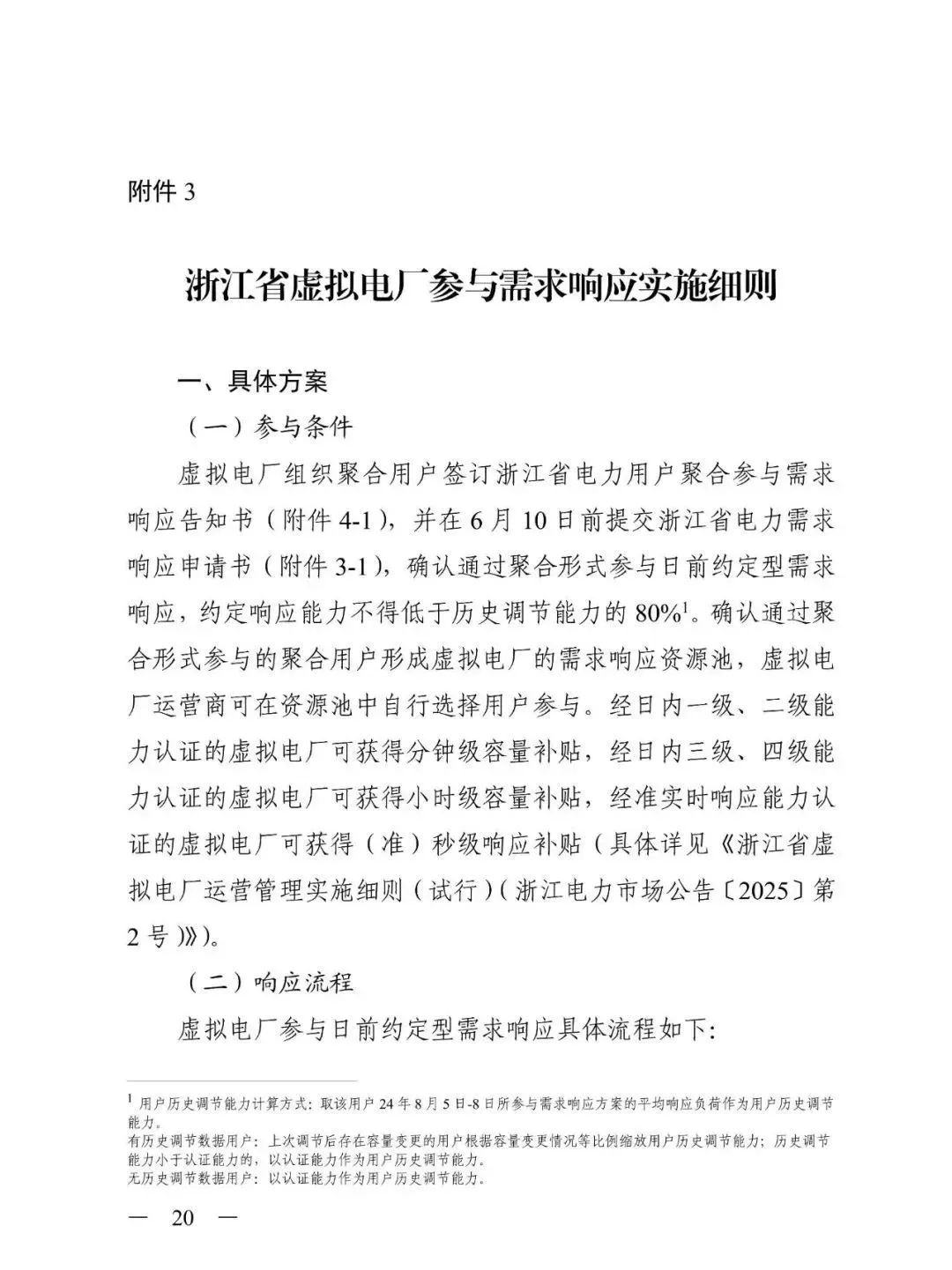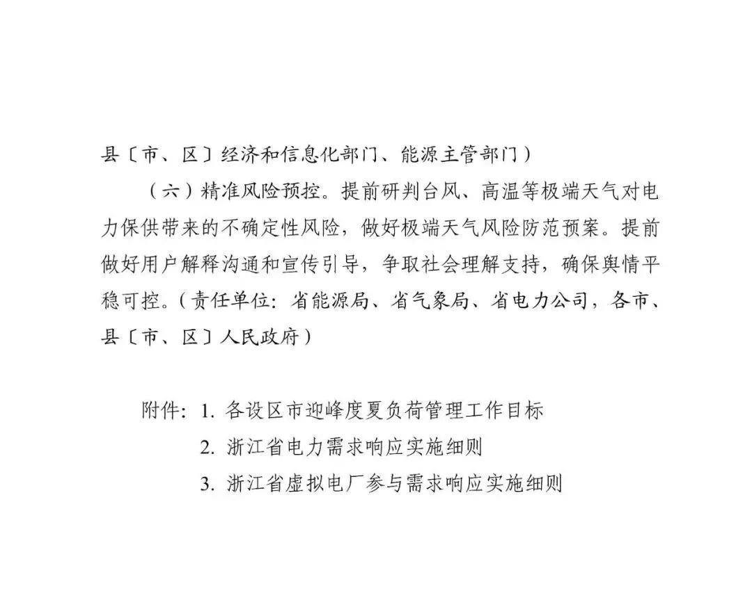 實(shí)施方案指出,鼓勵(lì)虛擬電廠參與響應(yīng)。根據(jù)《浙江省虛擬電廠運(yùn)營管理細(xì)則(試行)》和《浙江電力領(lǐng)域新型主體市場化響應(yīng)實(shí)施細(xì)則(試行)》,規(guī)范引導(dǎo)虛擬電廠等新型經(jīng)營主體參與市場化響應(yīng)、需求響應(yīng)等業(yè)務(wù),實(shí)現(xiàn)供需緊平衡、供需缺口等各種場景下常態(tài)參與負(fù)荷調(diào)節(jié),力爭調(diào)節(jié)能力達(dá)100萬千瓦。