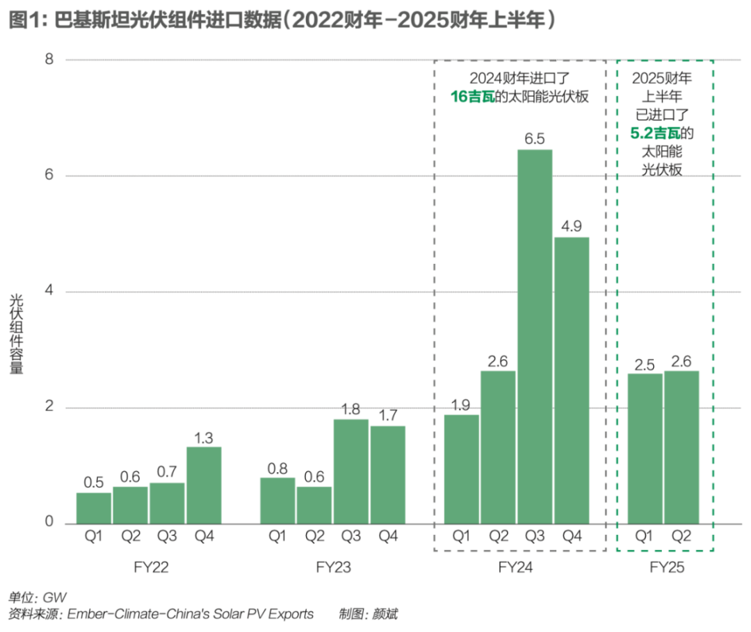 2024財年(巴基斯坦納稅年度,2023年7月1日至2024年6月30日),巴基斯坦進口了約16吉瓦光伏組件,這一規(guī)模相當于該國截至2024年6月總發(fā)電裝機量(45吉瓦)的近三分之一。15吉瓦組件中,只有0.63吉瓦用于集中式光伏,其他都是分布式光伏。