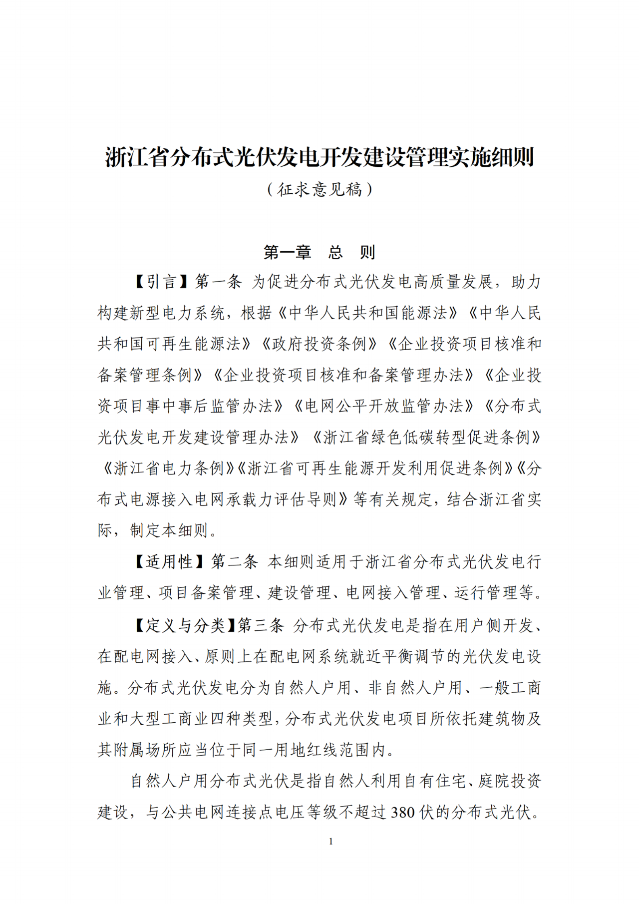 附件:浙江省分布式光伏發(fā)電開發(fā)建設(shè)管理實施細(xì)則(征求意見稿)