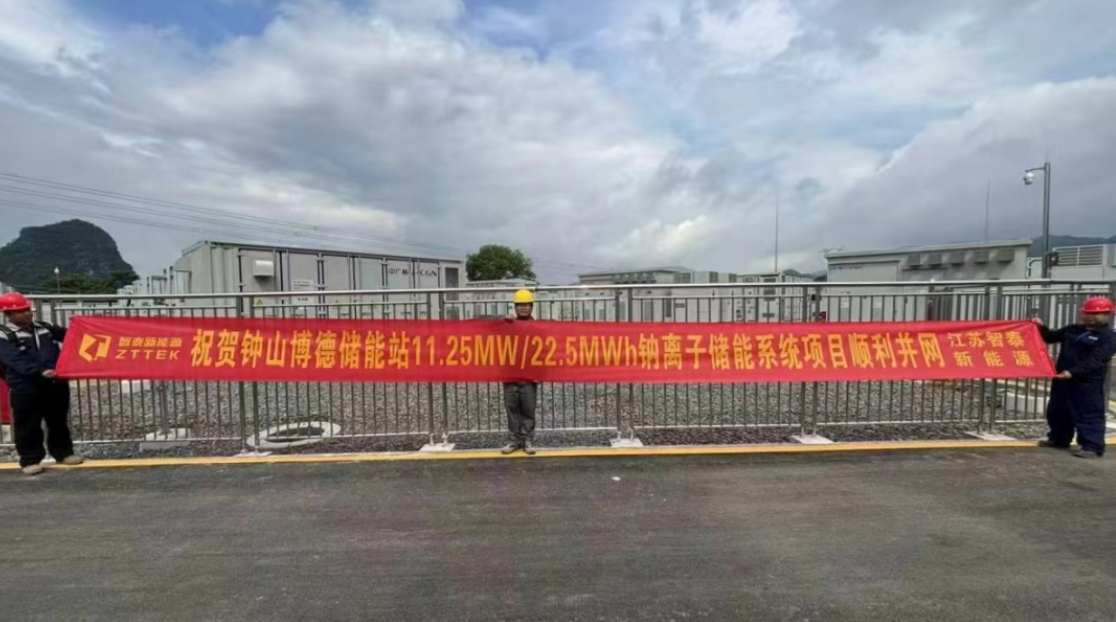 中國(guó)儲(chǔ)能網(wǎng)訊:近日,智泰新能源助力中廣核廣西鐘山200MW/400MWh集中共享新型儲(chǔ)能項(xiàng)目成功并網(wǎng),該項(xiàng)目采用“磷酸鐵鋰+鈉電池”新型混合儲(chǔ)能方案,由一套192MW/378.3108MWh鋰電和一套11.25MW/22.5MWh鈉電組成,是廣西壯族自治區(qū)當(dāng)前裝機(jī)規(guī)模最大的新型儲(chǔ)能示范項(xiàng)目。基于項(xiàng)目應(yīng)用需求,智泰新能源為該項(xiàng)目提供9個(gè)20尺鈉離子電池儲(chǔ)能集裝箱及5個(gè)逆變升壓一體倉(cāng),共計(jì)14個(gè)方陣。
