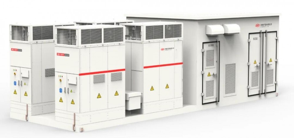 在項目推進(jìn)過程中,為節(jié)省儲能電站占地面積,采用了5MW/10MWh構(gòu)網(wǎng)儲能單元,交流側(cè)采用4機(jī)構(gòu)網(wǎng)儲能變流器并聯(lián)技術(shù),將4臺構(gòu)網(wǎng)儲能變流器集成于一套5MW構(gòu)網(wǎng)儲能升壓一體機(jī)中,較傳統(tǒng)構(gòu)網(wǎng)方案占地面積降低30%。