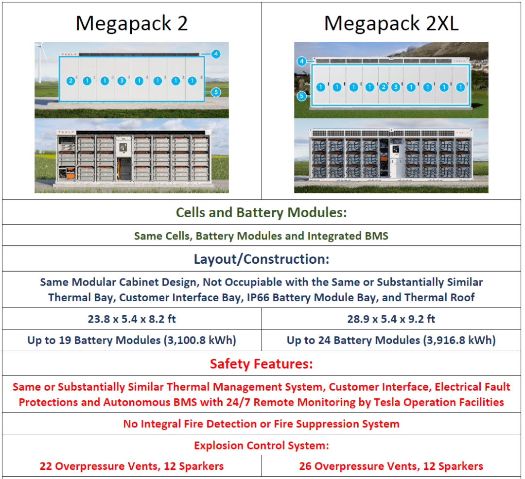 中國儲能網(wǎng)訊:特斯拉Megapack2和Megapack2XL(后續(xù)簡稱為MP2/MP2XL)是一種交流儲能艙。MP2是MP1的更新版本,采用類似的爆燃控制系統(tǒng),如壓敏通風口和火花器系統(tǒng),以管理爆炸風險。MP2XL是MP2的大容量版,采用相同的核心安全技術平臺(電池、通風口、火花器系統(tǒng)等)。然而,MP2/MP2XL使用C廠的LFP電池,而不是MP1中使用的NMC和NCA電池。