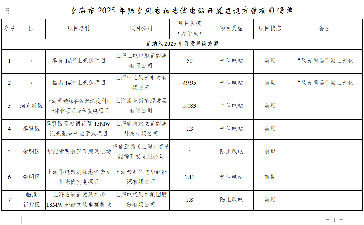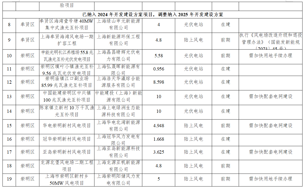 附件:上海市2025年陸上風(fēng)電和光伏電站開發(fā)建設(shè)項目清單