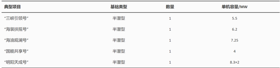 表1 我國投產(chǎn)的漂浮式風(fēng)力機(jī)樣機(jī)項(xiàng)目