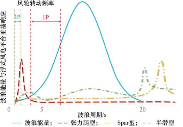 需要針對半潛浮式風(fēng)力機(jī)的服役要求,結(jié)合南海海域極端波浪的高波陡特性,研究二階波浪載荷作用下半潛浮式風(fēng)力機(jī)的運(yùn)動響應(yīng)特性,探討穩(wěn)性高、縱搖固有周期與一階縱搖的相互影響機(jī)制(見圖1),建立高波陡條件下半潛浮式風(fēng)力機(jī)的縱搖抑制方法和相關(guān)設(shè)計(jì)準(zhǔn)則,確保極端波浪作用下半潛浮式風(fēng)力機(jī)仍能維持良好的縱搖運(yùn)動特性。