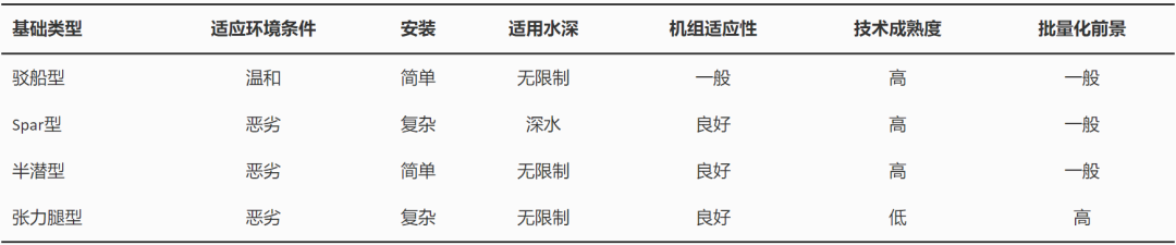表3 不同類型浮式風(fēng)力機(jī)基礎(chǔ)的特點(diǎn)