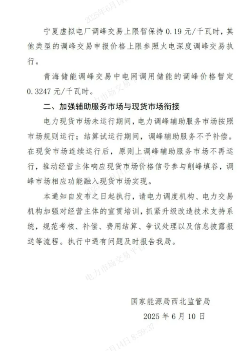 寧夏虛擬電廠調(diào)峰交易上限暫保持0.19元/kWh,其他類型的調(diào)峰交易申報(bào)價(jià)格上限參照火電深度調(diào)峰交易執(zhí)行。