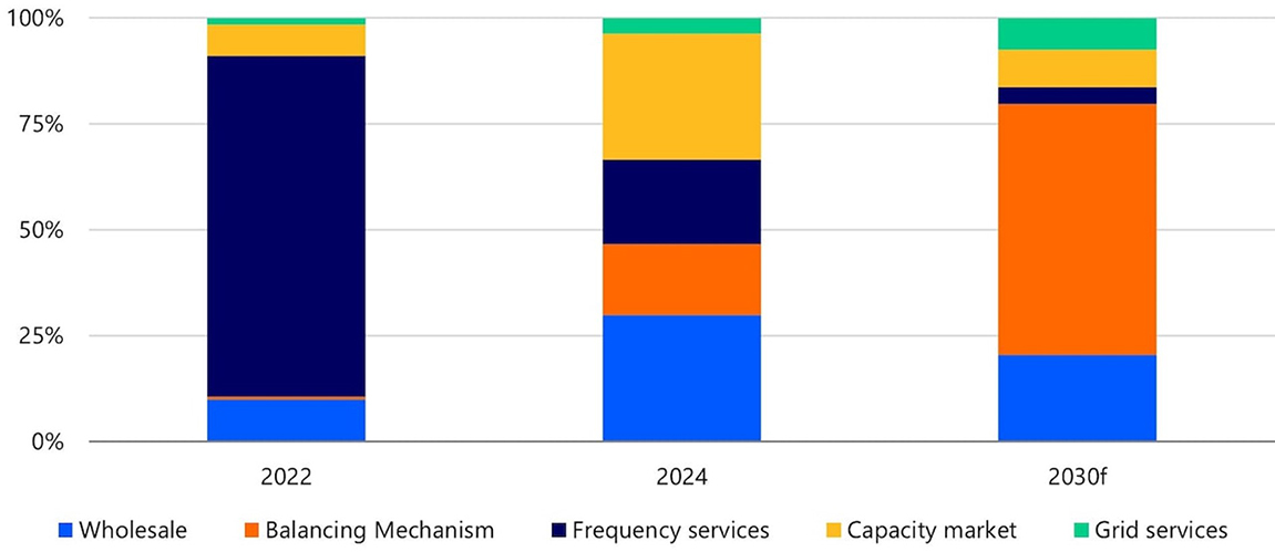 圖 英國電池儲能收入結(jié)構(gòu)變化
