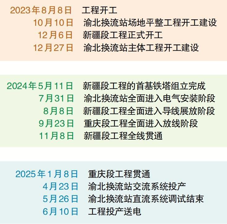 6月10日,哈密—重慶±800千伏特高壓直流輸電工程(也稱“疆電入渝”工程)投產(chǎn)送電。該工程是我國(guó)首個(gè)投產(chǎn)送電的“沙戈荒”新能源基地外送特高壓直流輸電工程,是西南地區(qū)首個(gè)特高壓直流受入工程,是我國(guó)第三條“疆電外送”大通道。工程只需7毫秒,就能將新疆哈密優(yōu)質(zhì)的風(fēng)能、太陽能等資源轉(zhuǎn)化成電能,送達(dá)重慶。