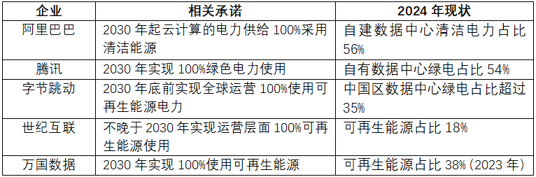 表2:國(guó)內(nèi)部分?jǐn)?shù)據(jù)中心建設(shè)企業(yè)清潔用能承諾及現(xiàn)狀