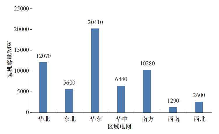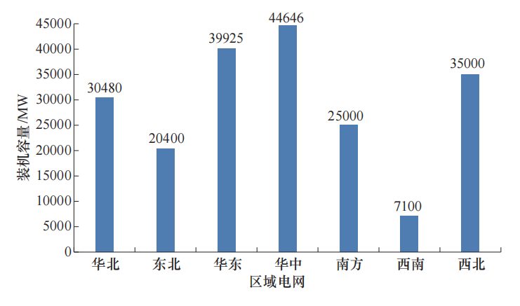 截至2024年底,我國抽水蓄能電站投產(chǎn)總裝機容量達到58690MW(見圖4)。華東區(qū)域最大,華北、南方區(qū)域次之。