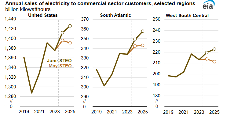 2025年5月6日,美國能源信息署(EIA)在其《短期能源展望》(STEO)中批露,美國的電力消耗將在2025年和2026年創(chuàng)下歷史新高。EIA預測,2025年,美國電力需求將增至42050億千瓦時;到2026年,將增至42520億千瓦時;而在2024年,這一數(shù)據(jù)就已創(chuàng)紀錄地達到40970億千瓦時。